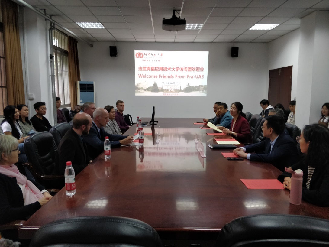 10月9日,德国法兰克福应用技术大学(Frankfurt University of Applied Sciences)师生访问团一行19人来我校交流访问,与我校计算机与信息工程学院的部分学生进行为期两周的专业交流活动。