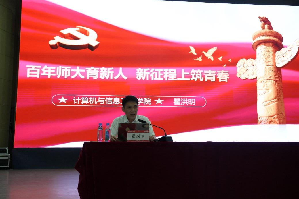 课上,瞿洪明以“百年师大育新人 新征程上献青春”为主题,围绕德以固师范根本,博学以成经世之道;乱花入眯眼,清浊须自清;百舸争流千帆竞,马不扬鞭自奋蹄等三个方面,详细介绍了学校的悠久历史、突出成绩大学精神、大学文化以及学院的发展概况,并希望同学们,一是要树立远大理想,厚植家国情怀,珍惜时光,找准定位,合理规划大学生活,为实现自己的理想目标不懈奋斗;二是要躬身实践,勇于担当,做好学习规划;三是要注重修养,乐观向上,让大学生活丰富多彩,以积极阳光的心态过好大学生活每一天。课堂上,在场师生认真聆听,互动频繁。同学们纷纷表示,站在新起点、迈向新征程,会明确奋斗目标,规划未来发展,夯实专业基础,做一名德才兼备、全面发展的合格建设者和可靠接班人。