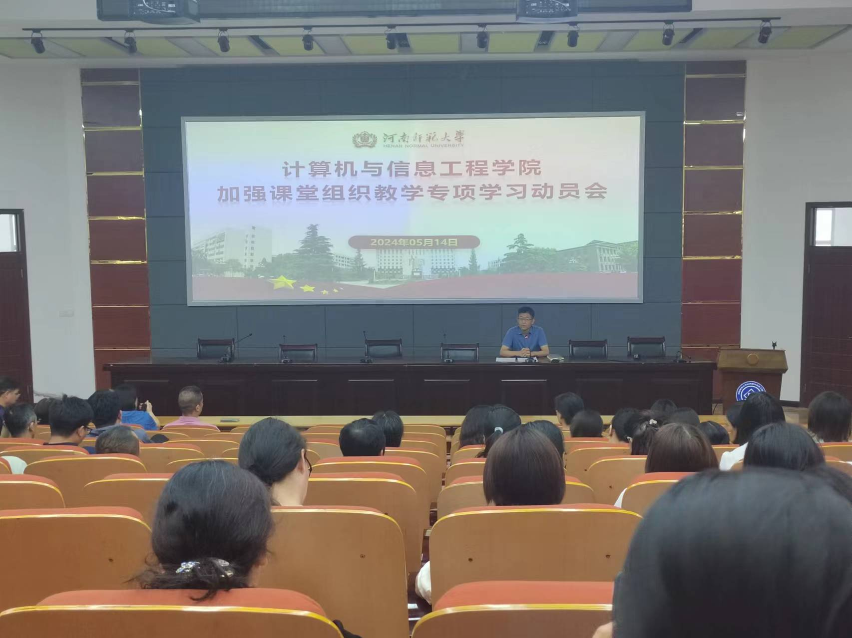 为提高课堂教学质量,进一步加强学风建设,5月14日下午,计算机与信息工程学院在学院217会议室召开课堂组织教学工作动员会,学院全体教师参会,会议由教学院长张恩主持。