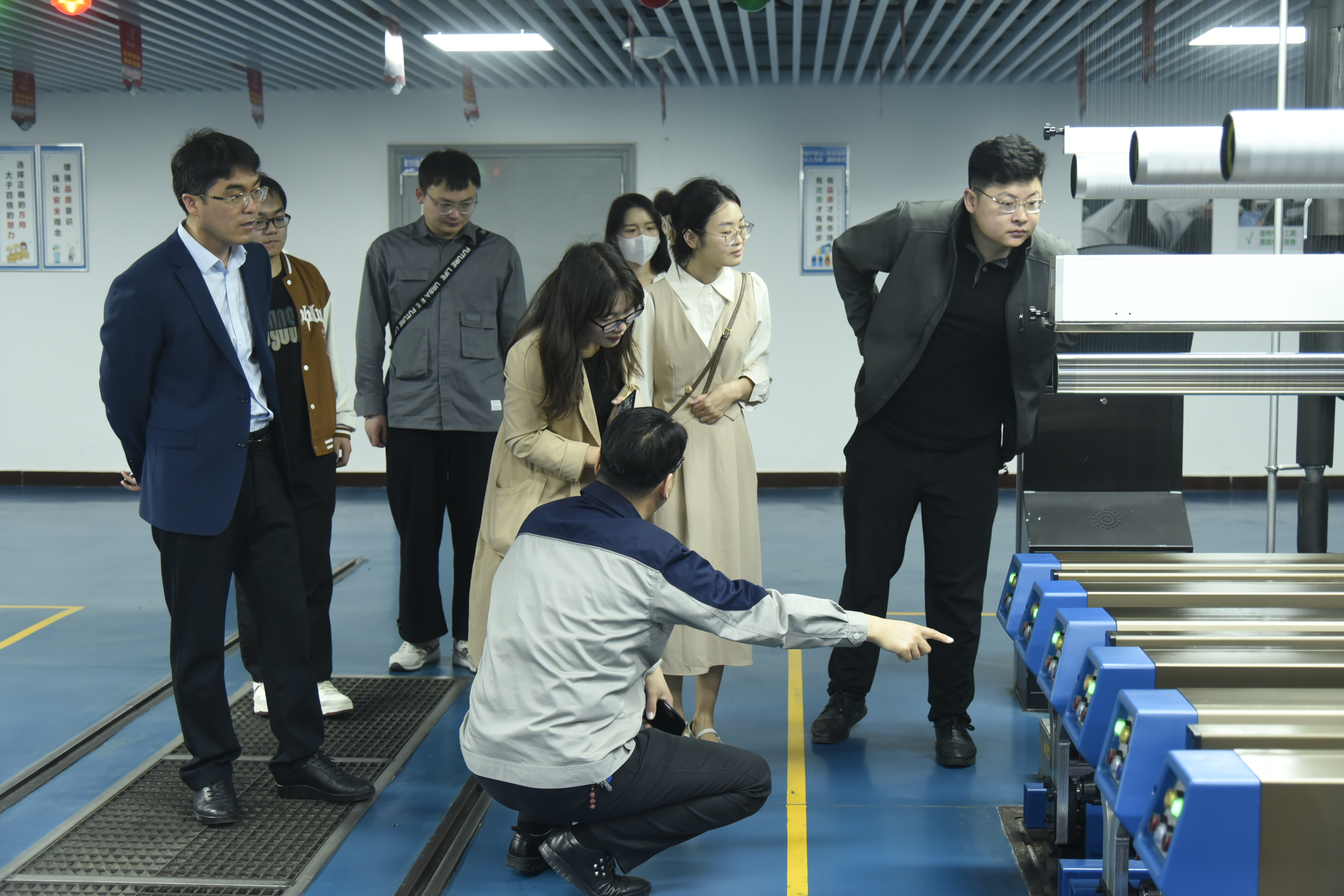 在访企过程中,学院领导、辅导员老师及毕业班学生代表首先参观了新乡白鹭投资集团的智能化生产线和自动化生产车间。随后,在集团会议室举行了座谈会,集团宣传部部长、人事处处长、技术处处长、信息中心主任等参加座谈,双方围绕党支部联建共建、人才培养、实验实训、实习就业等方面进行了深入的交流和探讨。