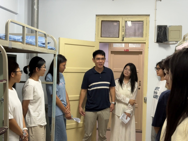 9月7日下午,我院领导班子带队,所有专兼职辅导员、楼管会成员、团委学生会主要学生干部陪同,一起深入新生宿舍,开展走访慰问活动,将学院的温情关怀与诚挚问候传递给每一位新同学。