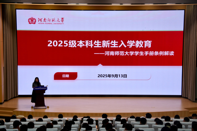 活动伊始,2025级新生专职辅导员钟桂华围绕《河南师范大学学生手册》,就校训校风、奖助政策、纪律处分等重要章节进行了系统而清晰的解读,并对请假制度、管理规定等关键内容作了重点强调,提醒同学们牢固树立规则意识,严格遵守校规校纪,为大学生活奠定坚实基础。