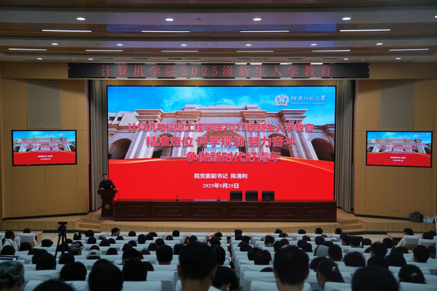 为助力2025级新生构建科学的就业观念,强化职业规划意识,清晰锚定大学四年的发展方向,9月23日晚,院成功举办了一场以“精准定位 科学规划 努力奋斗——争做新时代好青年”为主题的新生职业规划主题教育大会。本次大会主会场设在求真楼五楼西报告厅,分会场设在求真楼五楼东报告厅,学院党委副书记陈清利担任主讲人。