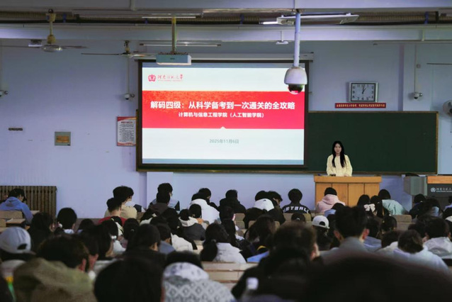 为扎实推进学风建设,营造厚德善智、笃行创新的育人氛围,11月6日,我院在新五五四楼302教室举办“解码四级:从科学备考到一次通关”经验分享会,2025级专职辅导员侯梦瑶及200余名本科生共同参与。