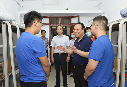 走进各学院迎新点,赵国祥一行重点了解了各学院的迎新主题、特色形式和专项服务。在物理学院迎新点,赵国祥对学院为新生准备的特色班服、记录美好记忆的相册等暖心礼物表示肯定。在生命科学学院迎新点,他听取了学院的迎新工作汇报,对学院利用大数据对新生进行精准配置、精细化管理表示认可。在研究生学院迎新咨询点,他翻看了研究生学院为新生准备的《师大研究生》《研究生学报》等刊物,强调要从政治、思想、学术等综合方面更好地培养优秀研究生。随后,赵国祥来到新生宿舍,了解新生的住宿环境,与新生进行了亲切交谈。赵国祥嘱咐他们要尽快适应大学生活,明确目标不松懈,同时养成良好的卫生习惯,保持干净整洁的生活环境。