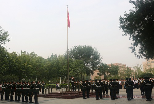 9月14日,我校在国旗广场隆重举行新学期升国旗仪式。党委副书记陈广文,党委常委、副校长李学志出席升旗仪式。党委学工部、学生处、人民武装部、就业创业指导服务中心、校团委、心理健康教育中心全体工作人员,各学院党委副书记、辅导员,旅游学院学生代表和未来学院学生参加了升旗仪式。仪式由党委学工部部长、学生处处长、人民武装部部长王宏伟主持。