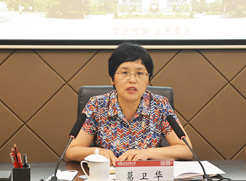 葛卫华介绍了我省全国文明校园创建的相关情况。她指出,本次考评将按照省委宣传部和省教育厅的部署,根据全国文明校园测评体系和要求,对省内高校进行实地考核和测评。她强调,文明校园建设是高校人才培养的重要内容,立德树人是高校的根本任务,“厚德载物”是中华民族的传统美德。高校精神文明建设工作是关于“德”的工作,要以“德”为先,要将精神文明建设融入到思想道德建设之中,打造高校文明创建的品牌和标尺。