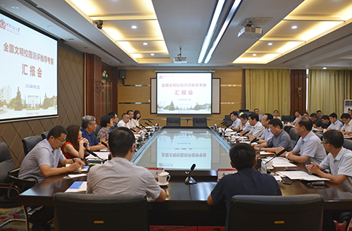8月31日下午,全国文明校园测评推荐考评组莅临我校对全国文明校园创建工作进行考评。考评汇报会在勤政楼第三会议室召开。省委宣传部思想道德建设处处长葛卫华,校领导赵国祥、常俊标、陈广文、梅宪宾、马治军、张尚字、刘玉芳出席汇报会。考评组其它成员及我校精神文明建设委员会成员单位负责人参加会议。会议由校长常俊标主持。