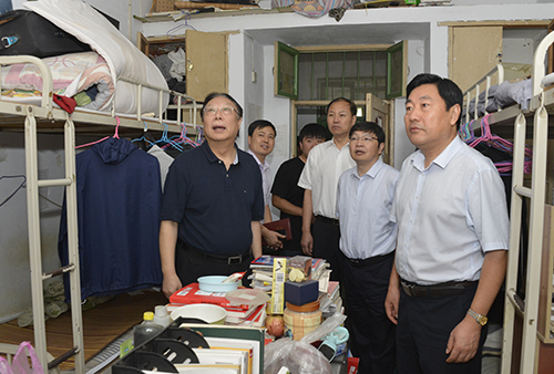 党委办公室、党委宣传部、校长办公室、学生处、保卫处、后勤管理处等部门负责人陪同检查。