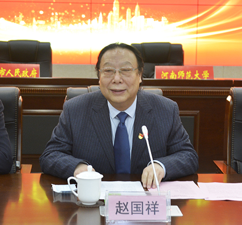 赵国祥指出,此次战略合作签约仪式的成功举行,意味着双方从全面交流向深度合作迈出了关键一步,标志着双方在深化产教融合、推进高质量发展方面开创了新的局面。近年来,卫辉市大力实施科教兴卫、人才强卫和“新卫一体化”战略,在经济建设、政治建设、文化建设、社会建设和生态文明建设等方面取得一系列显著的成绩,得到了社会各界的充分认可和高度评价。卫辉市委、市政府高站位谋划此次校地合作,积极支持河南师范大学拓展办学空间,推动学校特色鲜明高水平大学建设,彰显了卫辉市委、市政府超前的战略眼光和深厚的教育情怀。河南师范大学将充分发挥人才培养、科学研究、社会服务和学科发展等优势,深入推进校地“政产学研用”合作,为卫辉市经济社会发展注入新的动能与活力,为实现中原更加出彩、中华民族伟大复兴的中国梦作出新的更大贡献。