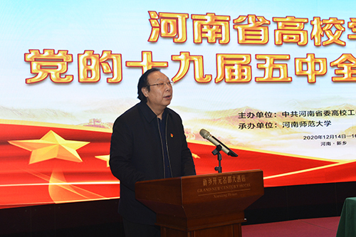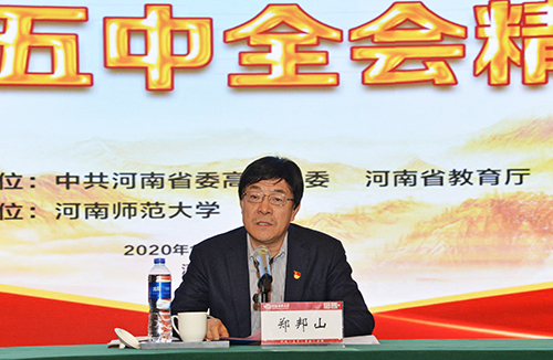 12月15日-16日,由河南省委高校工委、河南省教育厅主办、我校承办的全省高校学习贯彻党的十九届五中全会精神研修班在新乡举办。省委教育工作领导小组秘书组组长、省教育厅党组书记、厅长郑邦山出席开幕式并作主题报告,河南师范大学党委书记赵国祥在开幕式上致欢迎辞,河南省教育厅社会科学研究与语言文字应用管理处处长韩冰主持开幕式。全省本科高校主管哲学社会科学工作的学校领导、全省高校哲学社会科学管理服务部门负责人和高校智库代表共计300余人参加研修班。
