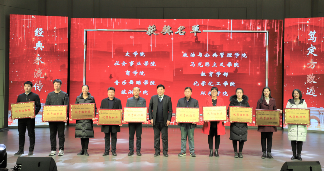 妙笔生花文意染,音韵书香声致远。12月22日晚,由党委学工部、学生处主办,文学院、马克思主义学院、政治与公共管理学院承办,音乐舞蹈学院、现代教育技术中心协办的第五届“阅享经典•书香师大”读书活动闭幕式暨颁奖典礼在帕瓦罗蒂音乐厅举行。校党委副书记陈广文,党委常委、副校长李学志出席典礼。党委办公室、党委宣传部、党委学工部、学生资助服务中心、心理健康教育中心、就业创业指导服务中心、校团委等相关单位负责人及各学院(部)党委(党总支)副书记、辅导员、学生代表500余人共同观礼。