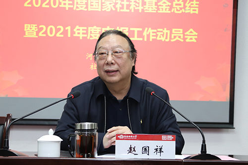 赵国祥代表学校高度评价了我校2020年度及“十三五”时期国家社科基金取得的成绩,对各获奖单位和获批项目的全体老师表示热烈的祝贺。赵国祥指出,这些成绩的取得,是广大教师努力奋斗、不懈追求的结果,是各文科学院认真组织,勇于担当的结果,是社会科学处精心谋划,高质量推进的结果。赵国祥强调,做好新时期学校哲学社会科学工作必须做到“四有”:一是必须始终树牢坚定的政治方向,坚持马克思主义在哲学社会科学领域的指导地位,做到“有信仰”;二是必须紧盯国家战略和发展方向,坚持以人民为中心的研究导向,做到“有情怀”;三是必须坚持严谨求实的学术方向,立志为国家富强、民族振兴、人民幸福做研究,走出“象牙塔”,多调查研究,做到“有担当”;四是必须树立敢打必胜的坚定信念,深入思考、科学论证、提升科研创新意识和科研创新能力,做到“有信心”。