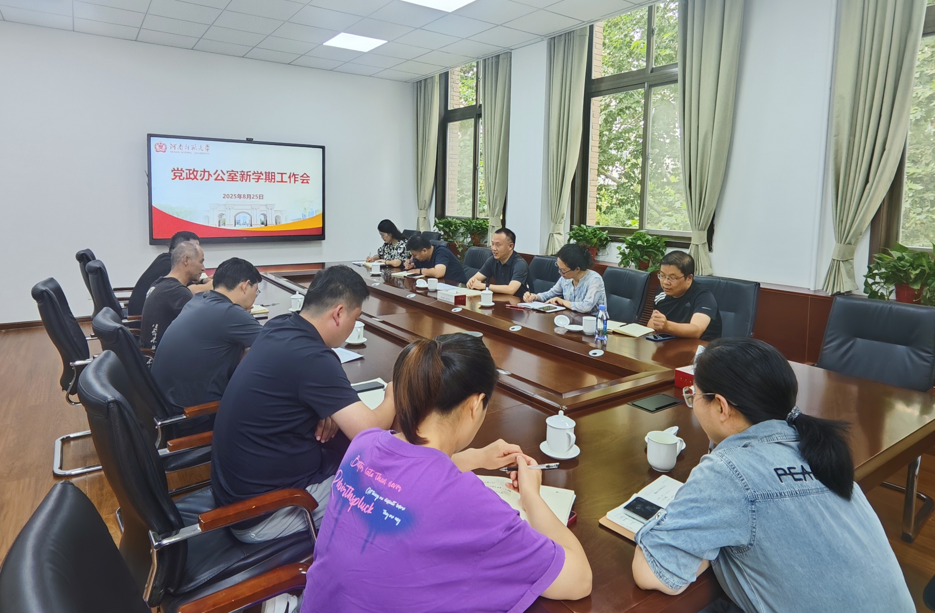 8月25日,党政办公室在勤政楼第一会议室召开工作会议,总结上半年重点工作完成情况,并就高质量做好2025年秋季新学期各项工作进行动员部署。会议由党政办公室主任王宁主持。
