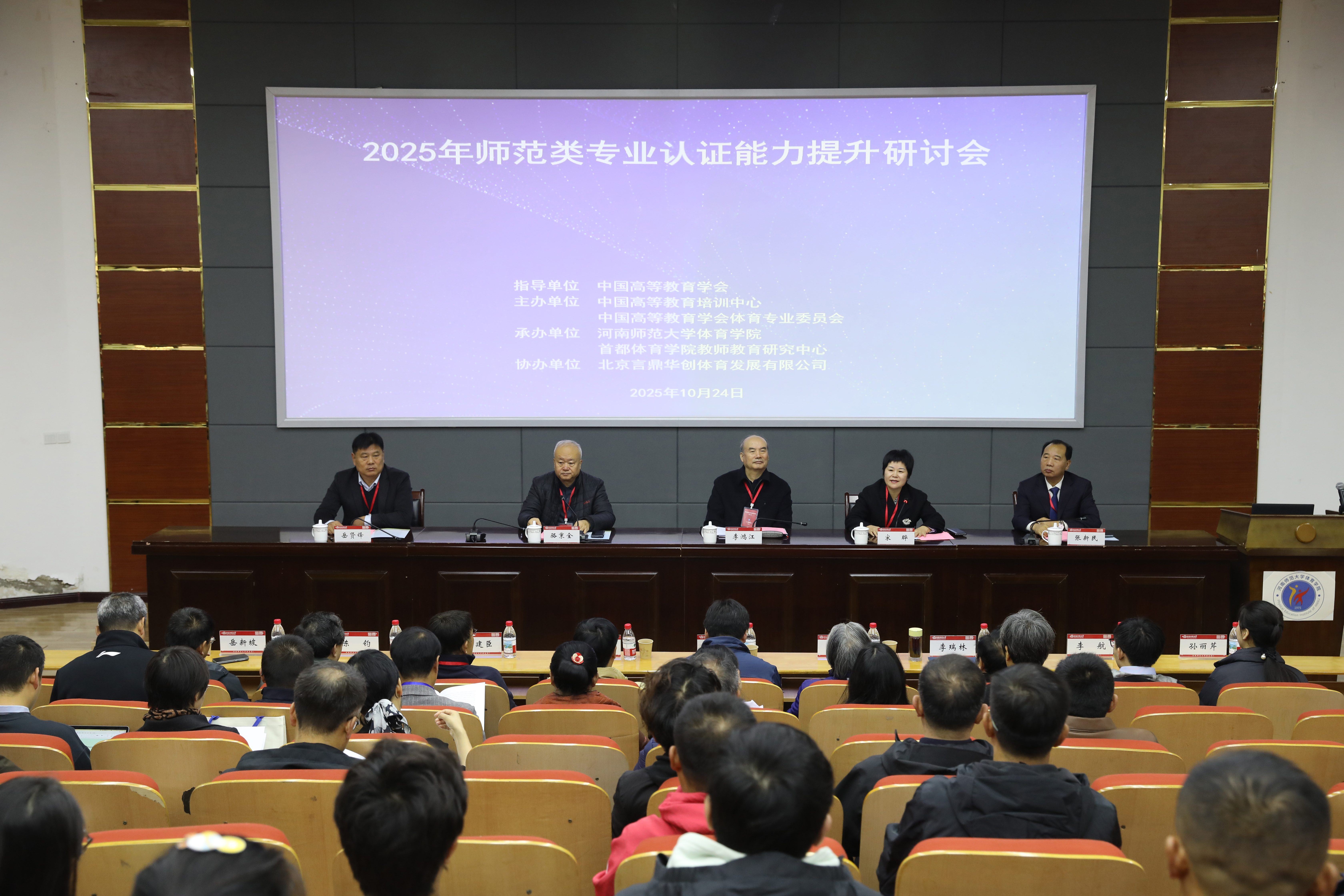 10月23日至25日,全国第一届师范类专业认证能力提升研讨会在我校崇德楼217报告厅举行。中国高等教育学会体育专业委员会理事长、首都体育学院原党委书记李鸿江,中国高等教育学会体育专业委员会秘书长、首都体育学院原副校长骆秉全,我校副校长宋晔,河南省教育评估中心主任张新民,中国高等教育学会体育专业委员会副秘书长阎守扶、李建臣、李瑞林及来自全国高校的110位同行专家参加了研讨会。