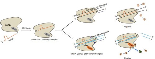 图 CRISPR/Cas12a检测体系产生荧光信号示意图