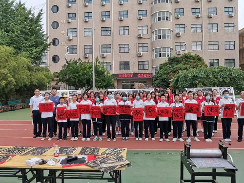 6月28日,美术学院在新乡市铁路高级中学举办“百幅红色版画进校园”党史学习教育展示活动。新乡市铁路高级中学校长李志杰、美术学院党委副书记、党员教师代表出席活动,学院学生党员志愿服务队携百幅红色主题版画参加活动。
