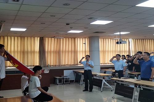 直播结束后,院党委书记来俊军带领全体党员重温入党誓词。全体党员面向党旗,紧握右拳,庄严宣誓,用铮铮誓词表达了对党的忠诚和热爱以及为党的事业奋斗终身的决心。