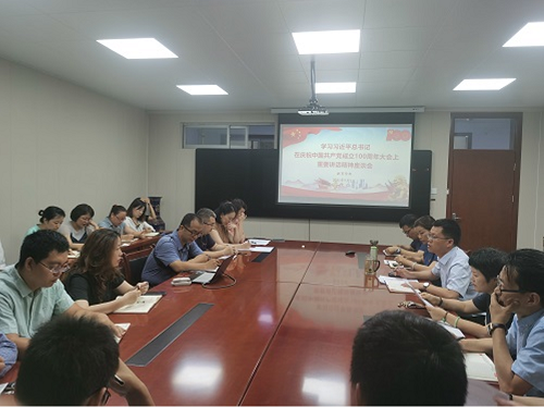 学部副部长苗学杰从习近平总书记重要讲话中五个“庄严宣告”出发,阐述了“庄严宣告”中昭示的伟大建党精神,并将以实际行动将这种精神传承赓续、发扬光大。