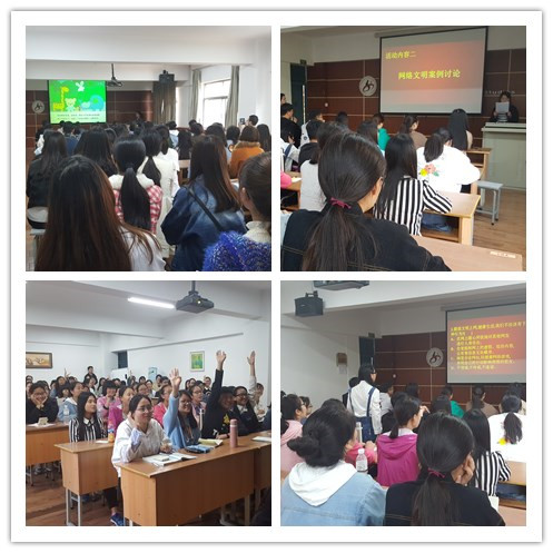各学生党支部通过制作网络文明宣传海报和征集网络文明双语宣传标语活动,面向全院学生普及网络文明知识,宣传文明上网、绿色上网的重要性,倡导同学们用文明语言和理性态度发表网络评论;通过开展主题宣讲观看相关教育视频、讨论网络文明案例以及网络文明知识竞答的活动,增强大家的网络文明意识, 倡导同学们时刻成为“网络文明”的践行者,让“争当中国好网民”的理念深入人心;通过网络直播分享会的形式为同学们宣讲健康文明网络知识,进行交流互动。直播期间,点赞量达4000余次。