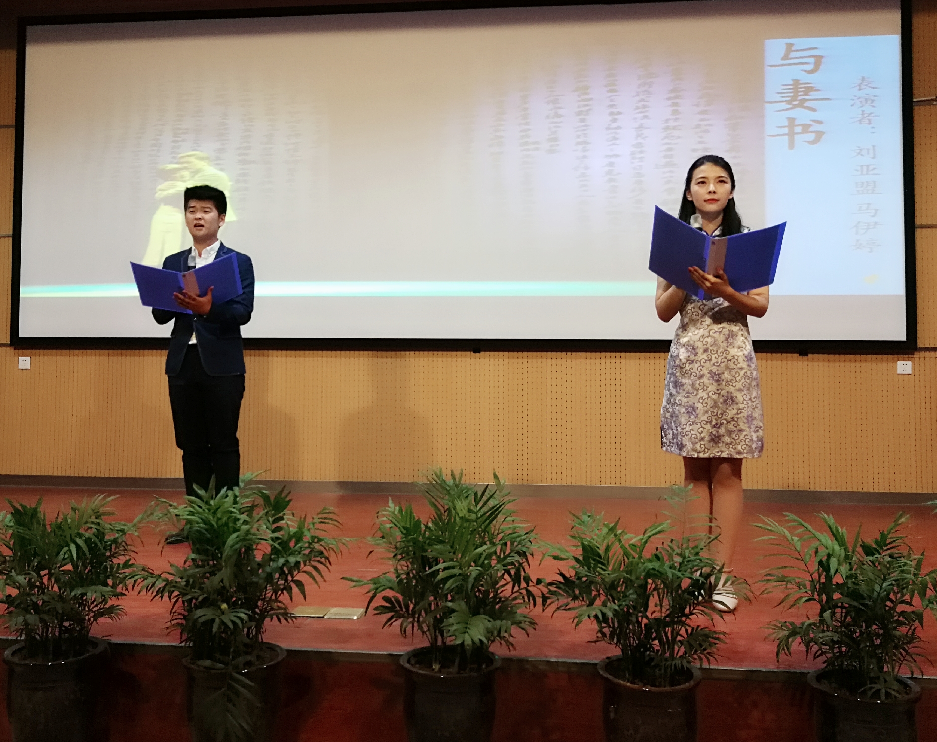 热情洋溢的开场舞拉开了整场晚会的序幕,动听的歌曲、高亢的古筝乐、激情的舞蹈无不散发着青春的味道。王彩琴老师与其“芹菜园”用一首《乡愁》引领学生们反思为何而学、意欲何为,谱写了教师应有的职业操守和教育信仰;话剧《一心一意,大爱无疆》展现了支援贫困山区的志愿者们无所畏惧的决心和毅力;《与妻书》文如黄钟大吕,情如杜鹃啼血,舍小家为大国,深情的朗诵更是让在座师生们深受感动。互动环节之“传统文化知多少”,学生们兴趣盎然、积极抢答,展现出学院研究生们对优秀传统文化的重视。