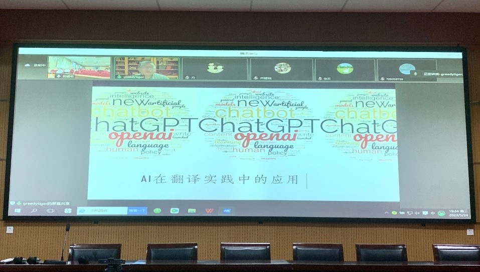 报告结束后,何文忠与参会师生进行了互动与答疑。通过此次报告,聆听者对人工智能在翻译实践的应用有了清晰的认知,拓宽了学术视野,启迪了科学思维,对开拓翻译思路、发现新的学术研究切入点大有裨益。