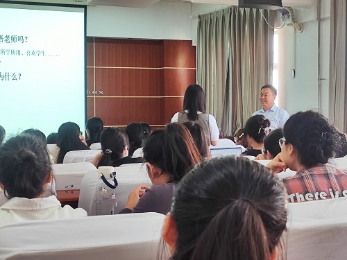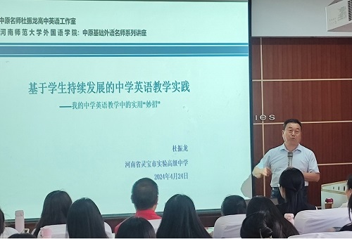4月24日下午,应外国语学院邀请,中学英语特级教师、首届全国中小学外语教师名师、河南省首届名师、灵宝市实验高级中学杜振龙老师在外国语学院国培教室作了题为“基于学生持续发展的中学英语教学实践——我的中学英语教学中的实用‘妙招’”的学术报告。讲座由外国语学院刘丽娟副教授主持,学院部分教师和2023级教育硕士研究生参会学习。
