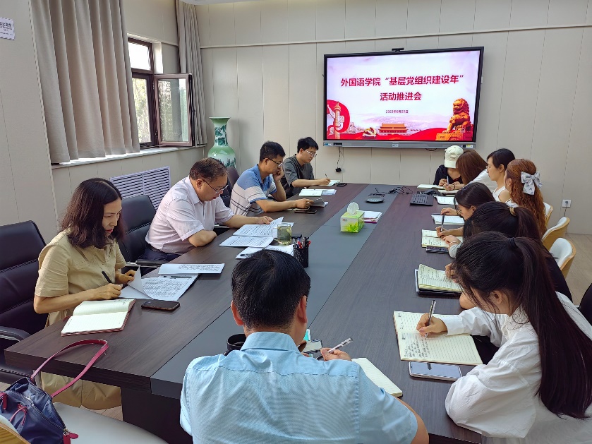 为确保“基层组织建设年”活动扎实开展、取得实效, 6月25日下午,外国语学院在外语楼三楼会议室召开“基层组织建设年”活动推进会。学院党委委员、全体支部书记参加会议。会议由学院党委书记赵成福主持。