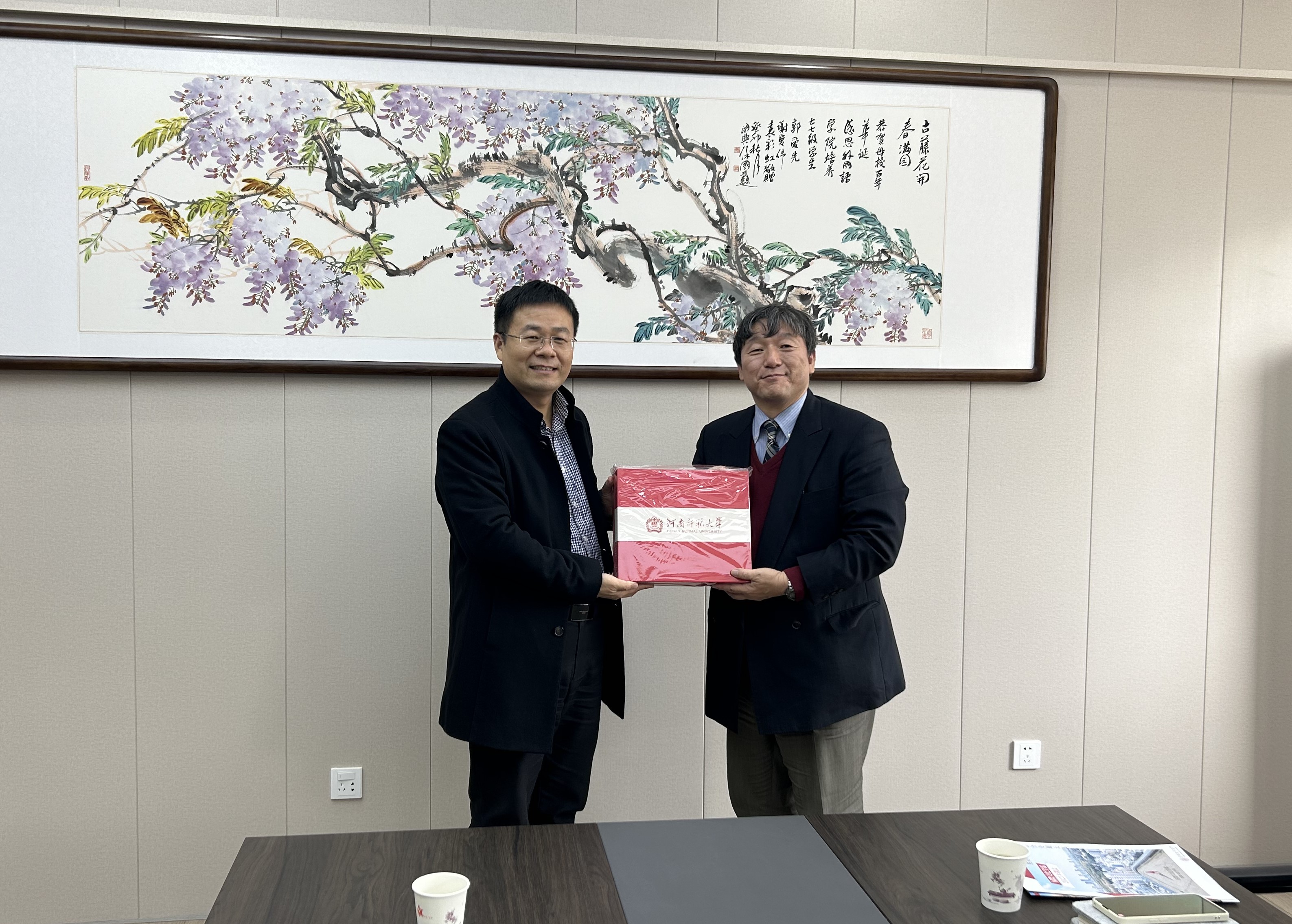 会议结束后,双方互赠纪念品,并合影留念。会后,三田教授参观了河南师范大学校园、中华优秀传统文化传承室、留学生公寓及学生餐厅。