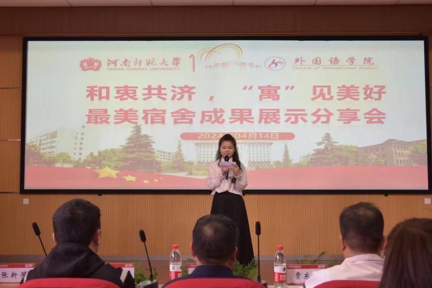 为落实“一站式”学生社区建设工作精神,展示学生宿舍文化建设成果,营造团结友爱、携手成长、温馨活泼的校园文化氛围,4月14日下午,外国语学院特举办“和衷共济·‘寓’见美好”最美宿舍成果展示分享会,邀请后勤管理处及外国语学院相关人员担任评委,百余名学生共同参加。