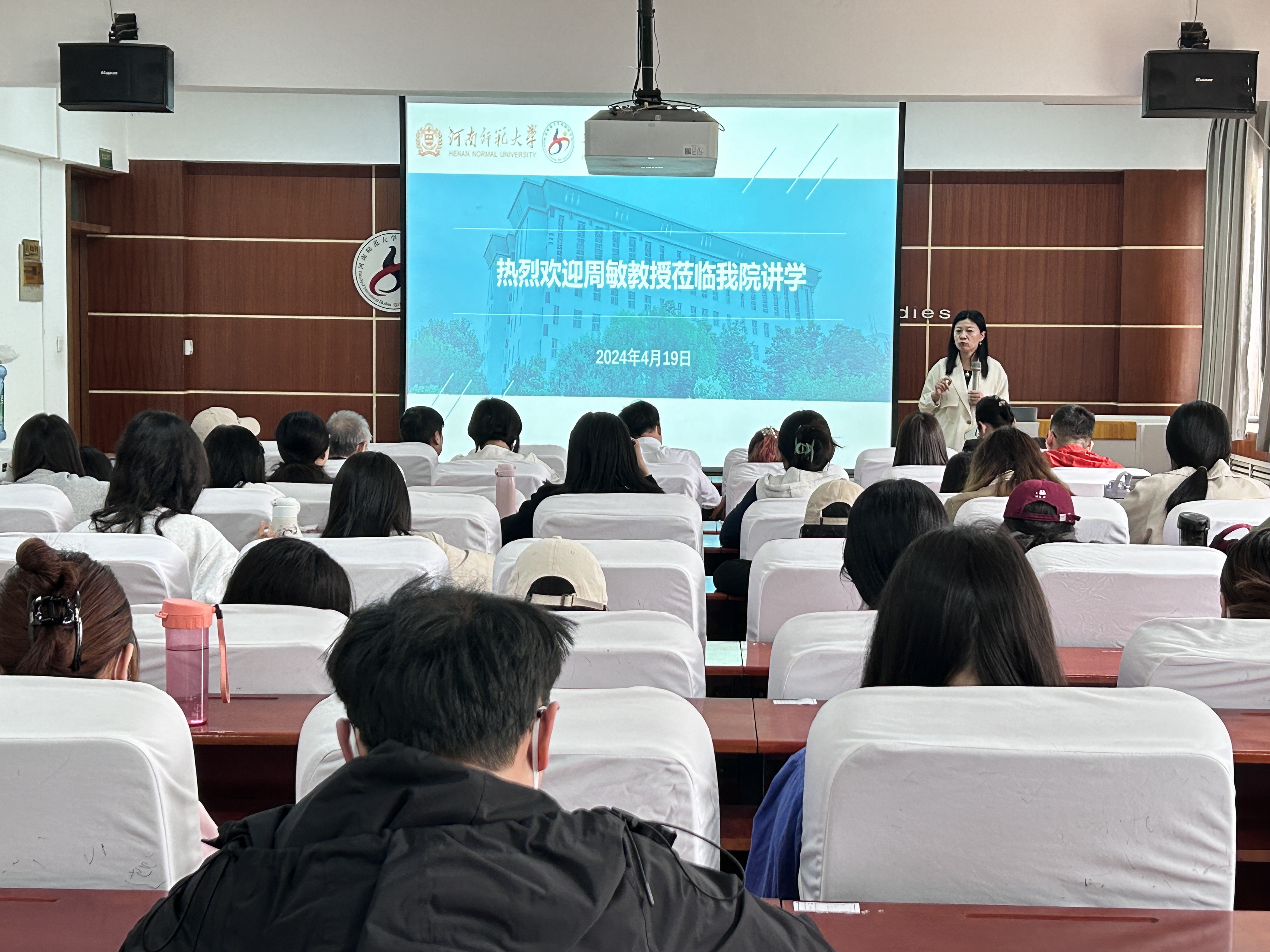 4月19日,应外国语学院邀请,杭州师范大学庞周敏教授在学院国培教室作了题为“区域国别学的语言文化构建路径”的学术报告,学院近百名师生参会聆听。外国语学院副院长王清杰主持报告。