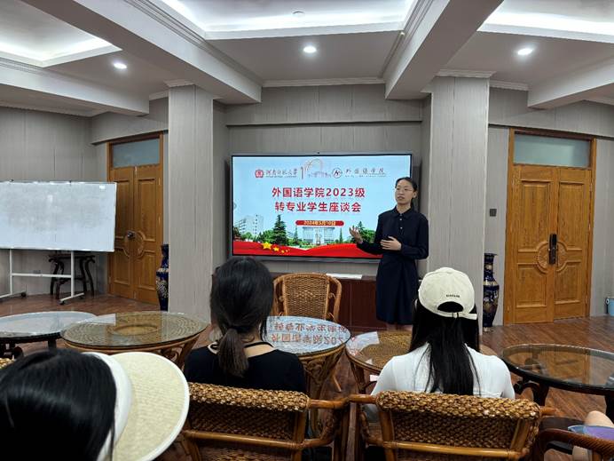 为帮助转专业同学加深专业理解,更高效地适应的学习环境,外国语学院2023级于5月10日下午在学院智慧教室开展转专业学生座谈会。本次会议由英语系主任赵波主讲,辅导员刘晓涵主持,兼职辅导员郑丽君、田野及2023级转入英语专业学生参加会议。