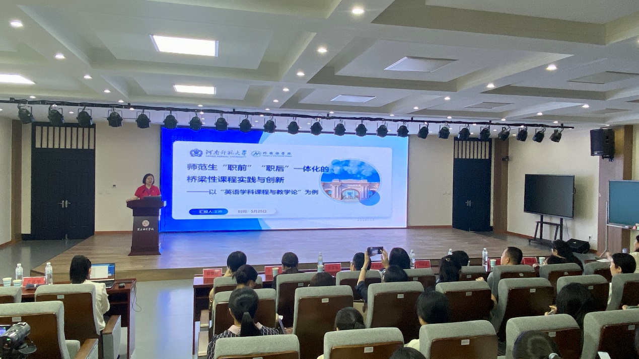 在会议上,王晔副教授做了“师范生职前职后一体化的桥梁性课程实践与创新——以英语学科课程与教学论为例”的主题发言。她首先阐述了师范生职前职后一体化培养桥梁性课程的重要性,指出桥梁性课程对于提升师范生的职业素养和教育教学能力具有关键作用。随后,王晔以核心课程“英语学科课程与教学论”为例,从教材选用、团队活动、学生学习成效等几个方面,详细介绍了学院课程建设的具体做法和创新尝试。