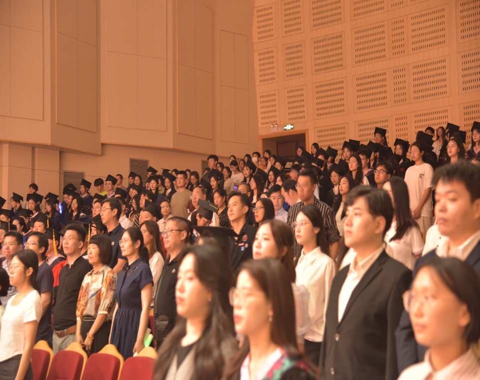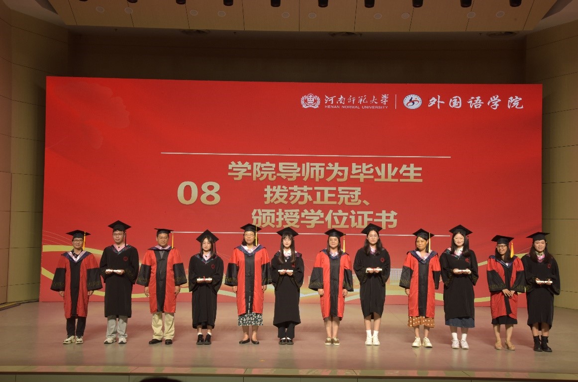 最后,全体师生齐唱河南师范大学校歌,典礼在歌声中落下帷幕。此次毕业典礼暨学位授予仪式不仅为外国语学院 2024 届毕业生的大学生活画上了一个圆满的句号,更是他们迈向崭新征程的起点。愿所有毕业生带着母校的深情期望和真挚祝福,秉承着河师大“厚德博学,止于至善”的校训精神,在未来的道路上乘风破浪、扬帆远航,书写属于自己的辉煌篇章。