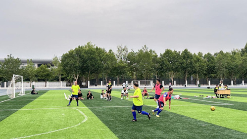 在之前的小组赛中,外国语学院教职工们凭借顽强拼搏,团结一心的精神,默契的配合和高超的球技赢得比赛,挺进四强。此次参加的半决赛,双方球队成员分别是外国语学院教职工和马克思主义学院教职工。球场中央,两支队伍展开激烈的对抗,球场边上师生们的呐喊与欢呼声此起彼伏,为比赛增添了无限活力。在比赛中,教职工们密切协作,分工明确,在绿茵场上挥洒汗水,奋力争先。教职工们相互喊口令提示,球在他们脚下来回传递,配合精准有力。快速的传切、精准的射门、稳健的防守,每一个瞬间都充满了激情和挑战。经过双方的激烈角逐,外国语学院荣获并列第三名的优异成绩。