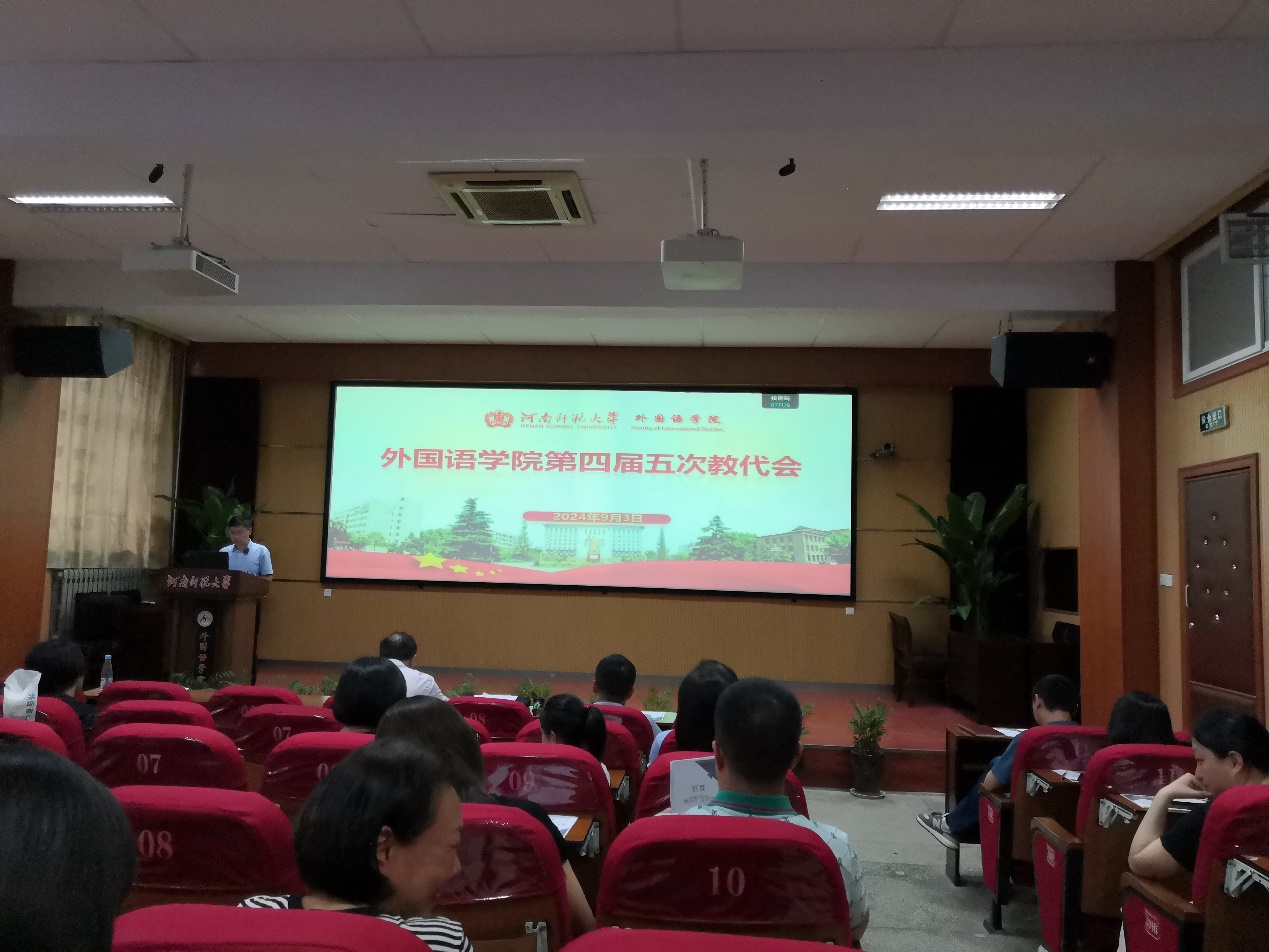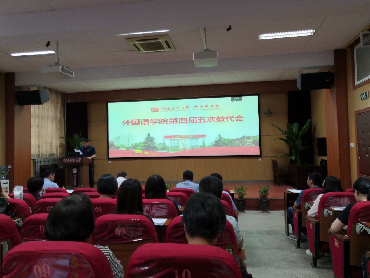 9月3日下午,外国语学院在学院学术报告厅召开外语学院第四届五次教职工代表大会。会议由院工会主席曹崇主持。