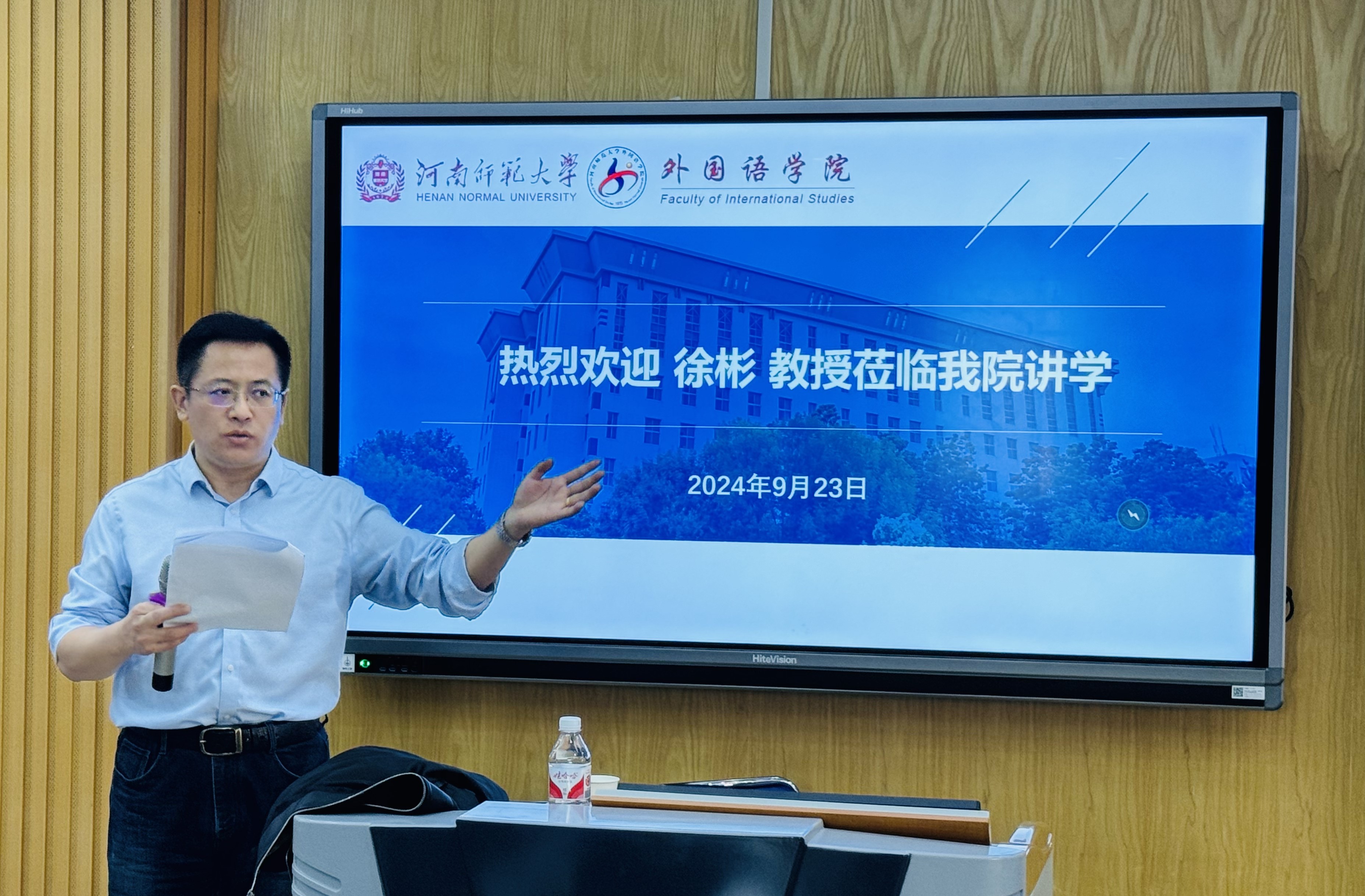 9月23日,应外国语学院邀请,东北师范大学徐彬教授在学院A301室作了题为“欲望生产与民族国家共同体构建——英国文艺复兴文学中的旅行冒险与殖民流散”的学术报告,学院近百名师生参会聆听。外国语学院姜士昌教授主持报告。