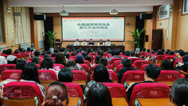 为激发学生干部的工作热情与创新活力,进一步加强学生干部的队伍建设,推动学院学生工作有序开展,9月26日晚,外国语学院2024年下半年学生会第三次全体例会在学院报告厅成功开展。外国语学院党委副书记曹崇出席本次会议,学生会全体成员参加。