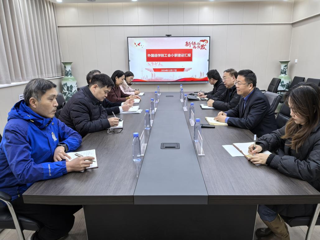 12 月 17 日下午,校工会副主席任永利、王毅一行莅临外国语学院,就工会小家的建设情况展开专题调研,外国语学院党政领导班子及部分教职工代表参与此次调研活动。
