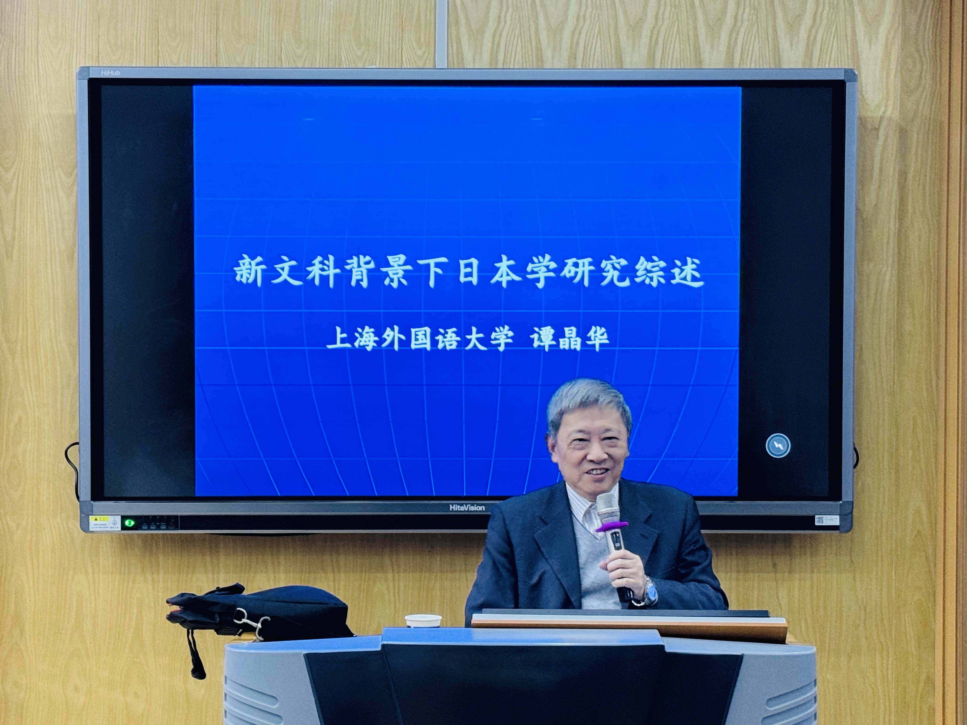 12月19日,应外国语学院邀请,上海外国语学院谭晶华教授在学院A301室作了两场题为“新文科背景下日本学研究综述”和“科研项目的选题与项目书撰写”的学术报告,学院近百名师生参会聆听。外国语学院副院长孙士超主持报告。