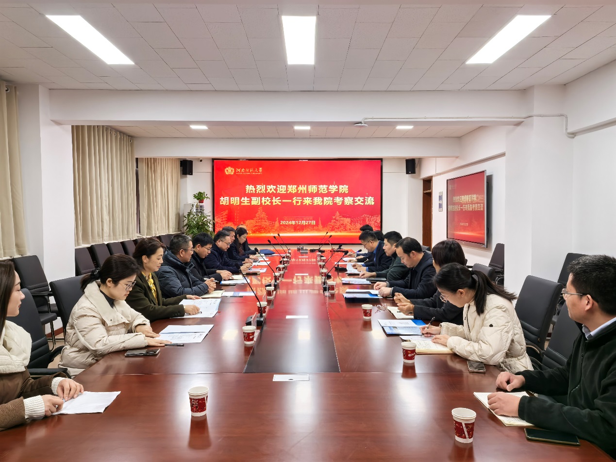12月27日下午,郑州师范学院副校长胡明生一行7人莅临我院考察交流,院党政班子成员和相关负责人参加会议。