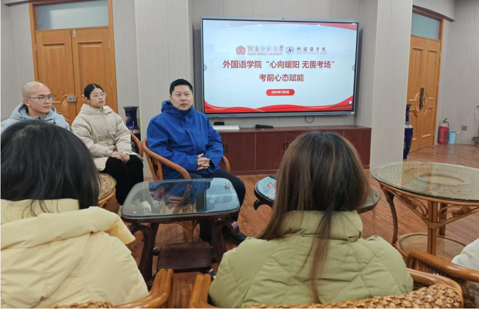 为有效缓解学生考前紧张焦虑情绪,助力学生以积极乐观的心态直面期末考试,外国语学院于1月2日下午在common room开展“心向暖阳,无畏考场”考前心态赋能座谈会。外国语学院相关负责人、辅导员以及学院学生参与,会议由2024级辅导员师公祯主持。