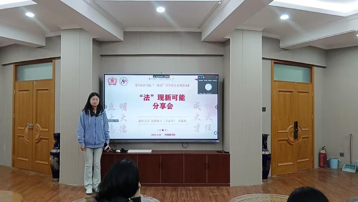 分享会邀请到了外国语学院2024届优秀毕业生、现就读于重庆大学法律(非法学)专业的李嘉琦作为主讲嘉宾。她结合自身的备考经验,围绕是否选择考研、考研择校、备考方法以及心态调整等方面分别进行深入浅出的讲解。在探讨“是否选择考研”这一核心问题时,李嘉琦从学历提升、知识储备、能力培养等多个维度进行剖析,鼓励同学们勇敢踏上考研征程,丰富学识、提升自我,为未来的职业发展和人生规划打下坚实基础。在择校环节,李嘉琦提出“这个学校能不能‘嫁’”的生动比喻,建议从专业方向、学校层次和地域因素三方面综合考量。她特别提到,备考期间需注重效率而非单纯堆砌时间,同时强调考研过程漫长且充满挑战,要保持积极乐观的心态,秉持“流水不争先,争的是滔滔不绝”的信念,持之以恒地投入到备考当中。