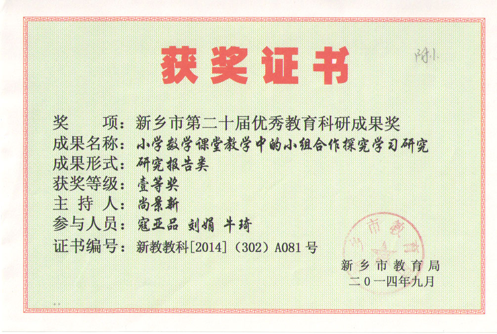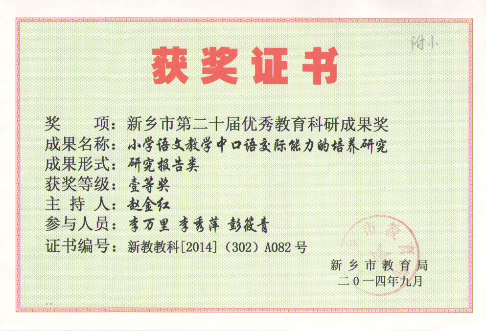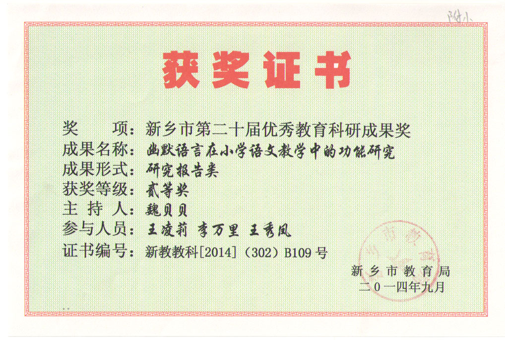附属小学确定了“科研兴校”的办学方针,充分调动老师们从事课题研究的积极性,积极创造条件,组织教师进行课题研究,取得了很好的成绩。一年来,共获省级优秀成果奖2项,获市级优秀教育科研成果奖5项。