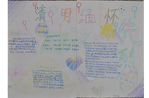 在清明节来临之际,为追寻英雄足迹,继承先烈遗志,弘扬民族精神,增强责任感和使命感,附小组织全体师生举行了“缅怀革命先烈”主题活动,班队会形式多样,有演讲、诗歌朗诵、观看电影、手抄报等。还积极组织孩子们在网上向革命先烈献花、抒写感言寄语,了解祖国历史、学习英模事迹。同时开展网上祭扫烈士陵墓的活动(新乡文明网http://hnxx.wenming.cn/),具不完全统计,有近600名学生上网投票、献花。