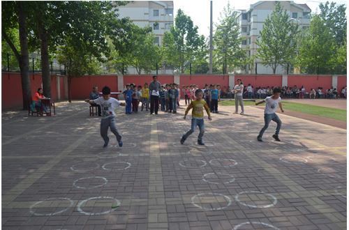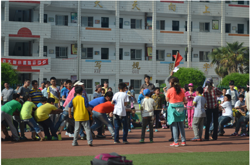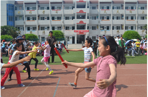 运动会在欢快有趣的气氛中进行。比赛项目有篮球接力比赛、跳大绳、拔河、春播秋收、跳单双圈、骑独轮车、接力赛等。赛场上小运动员们一个个生龙活虎,积极拼搏,为校园增添了一道生机盎然的风景线。