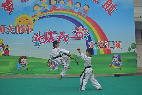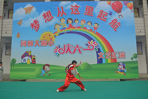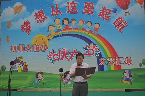 校长助理朱华北首先向孩子们表示节日的祝贺,向全体老师表示诚挚地慰问;接着热情洋溢地表扬了孩子们取得的成绩,充分肯定了附属小学开展的各项工作。最后祝愿附小再接再厉,取得更大的成绩。