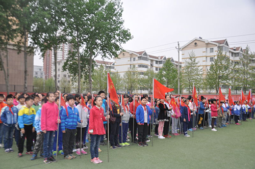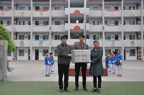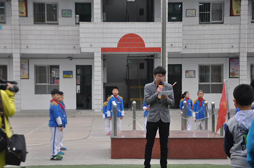 4月11日上午升国旗仪式上,我校举行“小记者工作站”换牌仪式。我校李万里校长,李秀萍校长和小记者负责人张庆祥参加了此次换牌仪式。