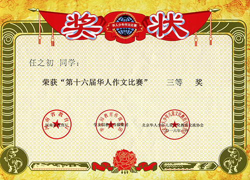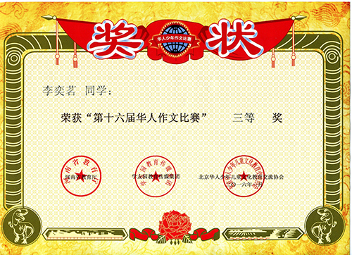 我校学生获“第十六届华人作文大赛”奖
