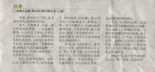 平原晚报:河师大附小学生刘心仪作文《四季》